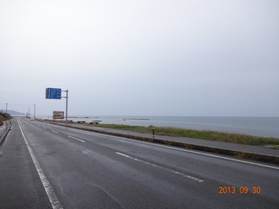 今までは両側が樹木で遮られ、海沿いなのに海の見えないアップダウン道が続いたが、やっと海が見えた。