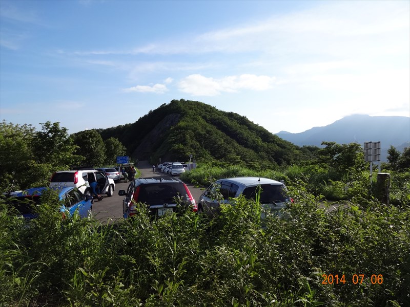 早朝に枝折峠登山口に到着したが、好天の日曜日だと収容50台の駐車場はほぼ満車。