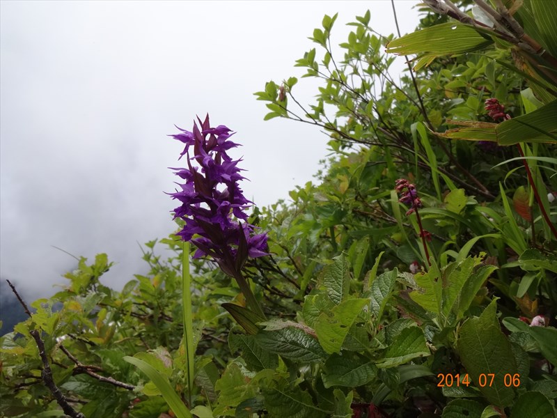 山頂直下にはハクサンチドリ。下山時に雪渓を靴滑りしたら豪快に尻もち。尻も心臓もヒヤリ。