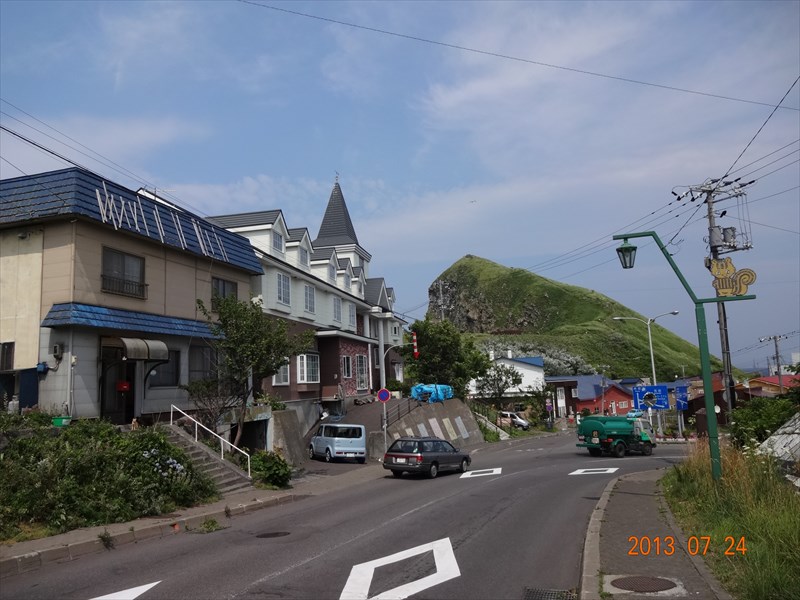朝起きると昨日までの晴天が一転、道路は濡れ、利尻岳は雲に隠れていた。