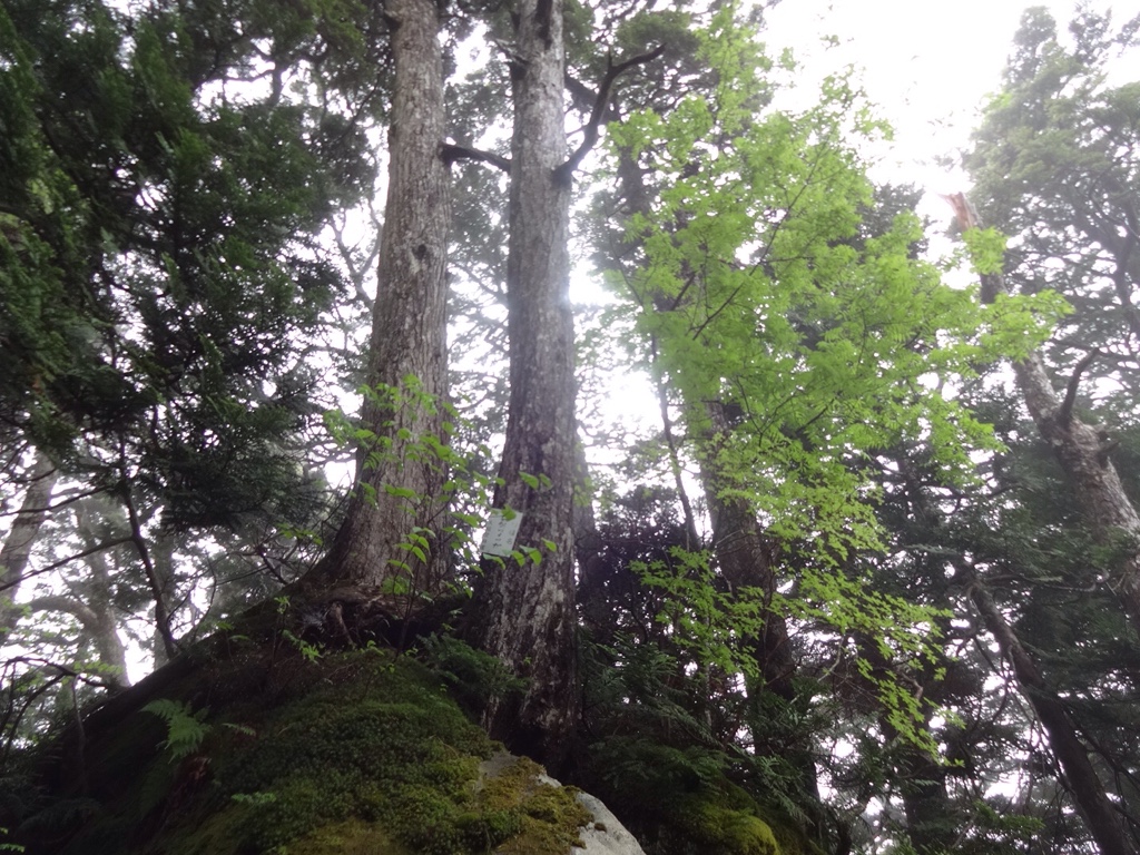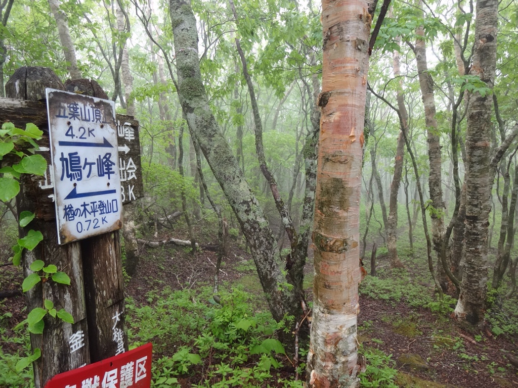 雨の中林道を歩き昼過ぎに登山口に着いた時は雨は上がり多少ガスがかかっていた。登山口で軽食補給後に徐々に晴れることを期待し登山道へ。