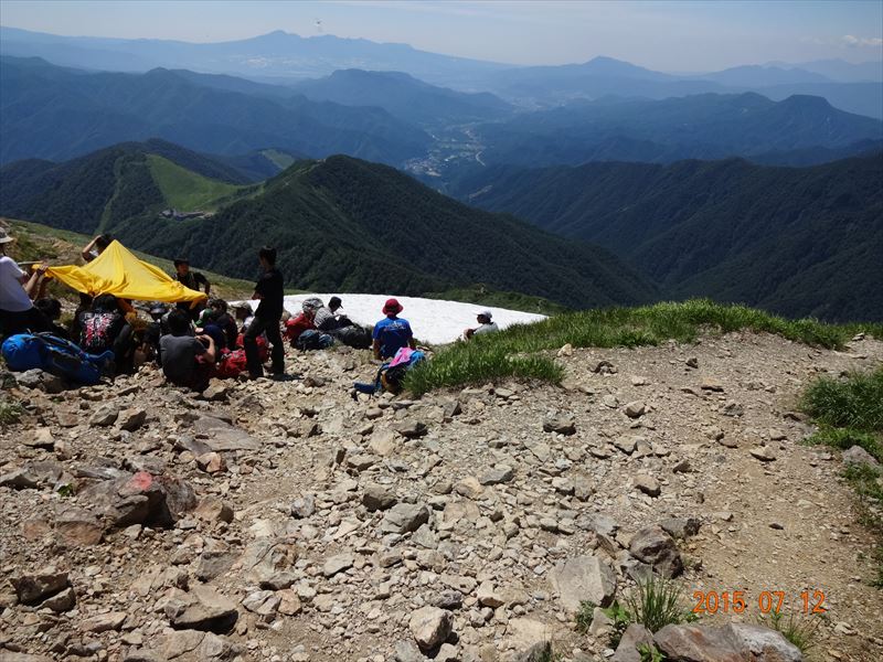 山頂手前のザレ場では、熱中症らしき人を介助するサークルもいた。