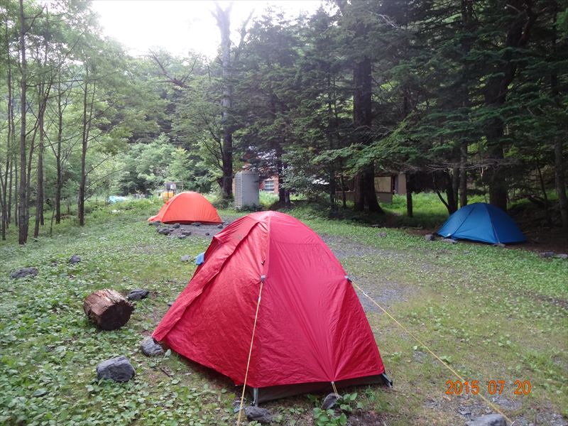 14時40分 両俣小屋テント場に着