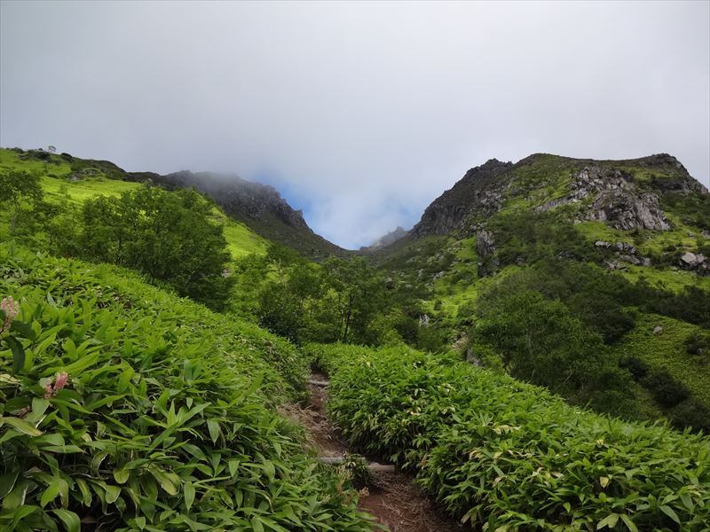 この日も霧気味だったが、時々晴れ間も覗く。2時間少々で割と楽に山頂到着。