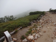 歩き始めて2時間が過ぎ、徐々にガスが薄れて薬師岳も見え、久々に気持ちも高まる。