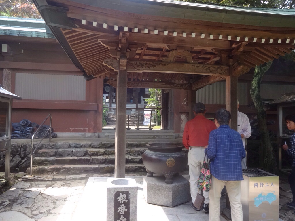 最初の寺到着の所要時間は予定どおりにだったため遅れは挽回出来ず。しかも雨が上がりレインウエアを脱いで収納する時間が余分にかかる。