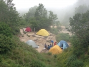 昼前に烏帽子小屋に到着し昼食をとりテントを設営した後、烏帽子岳に向かう。