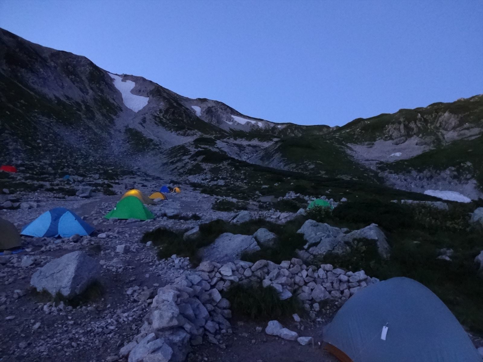 テント設営、夕食準備、夕食を済ませて20時前には就寝。