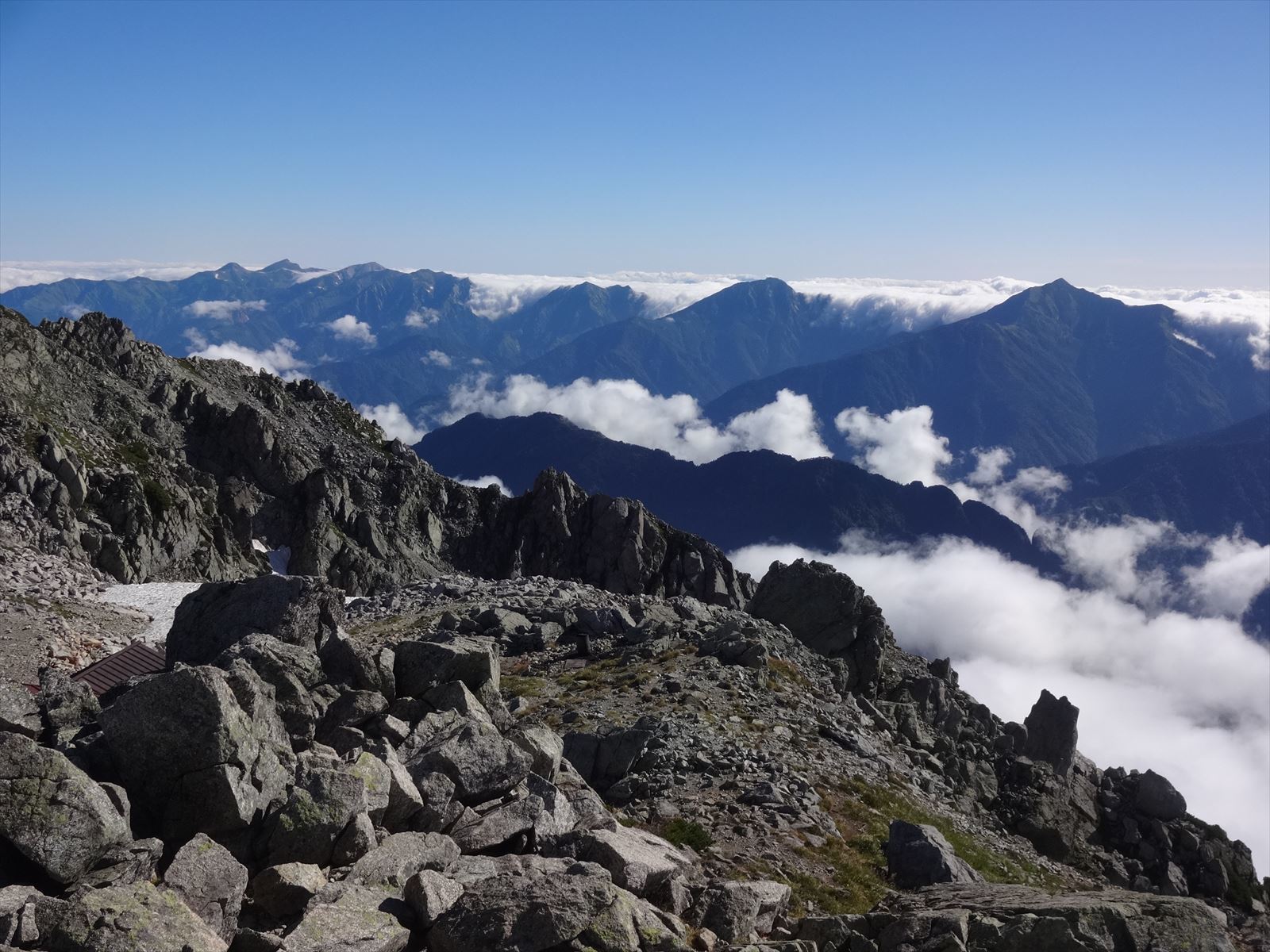 低山が雲海に隠れ気味になるため高峰がより一層際立つ。