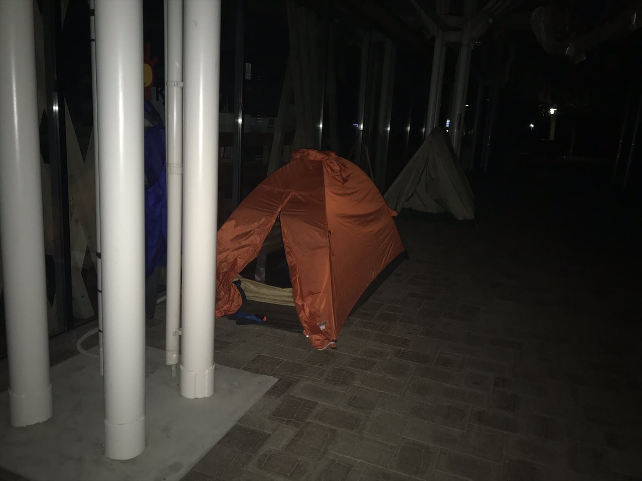 先着野宿者によると店員の出勤が早いため6時には出発した方が良い