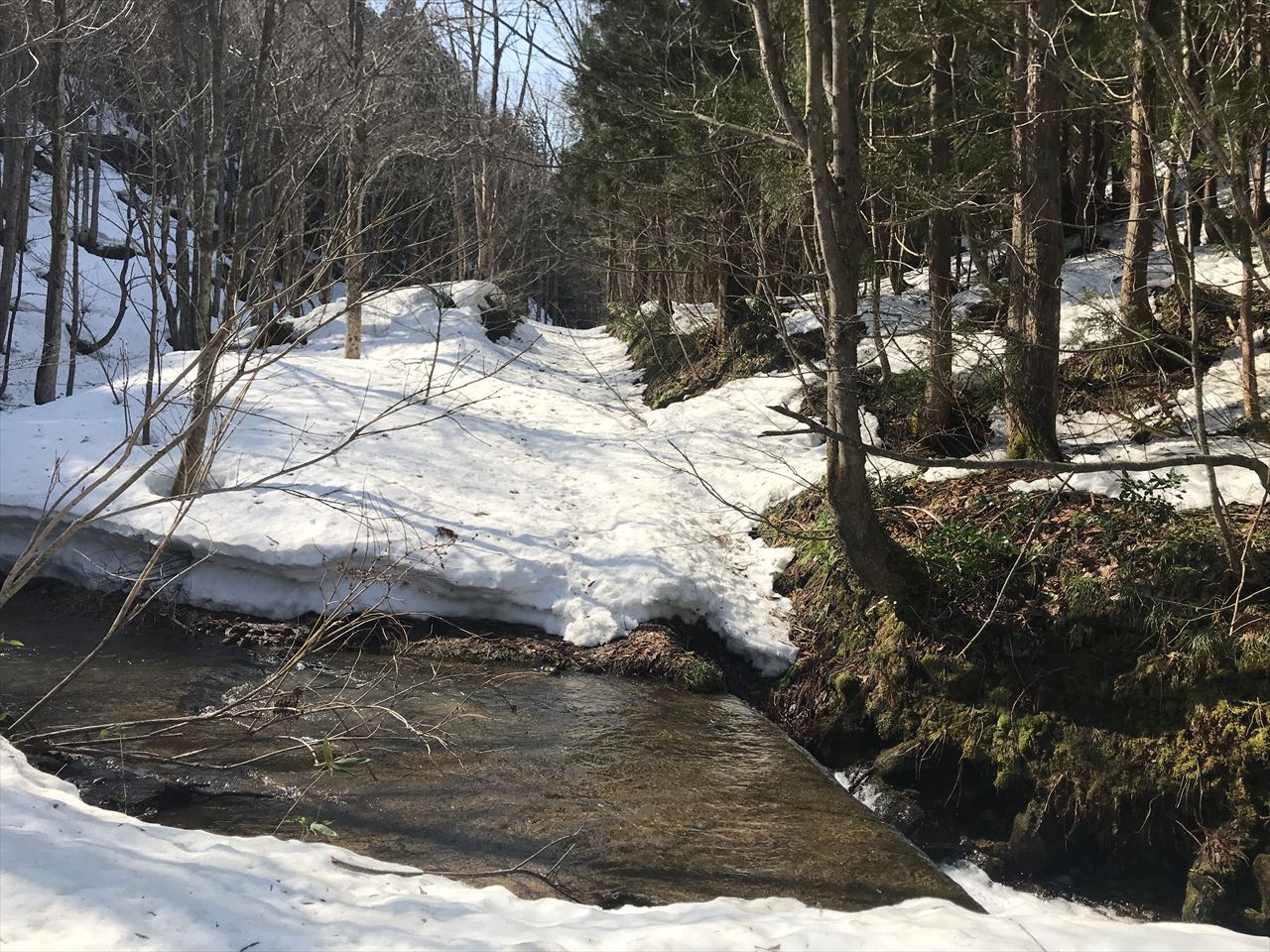 復路は雪解けでヤブが出現し更に一部崩落箇所がありお薦めしません。