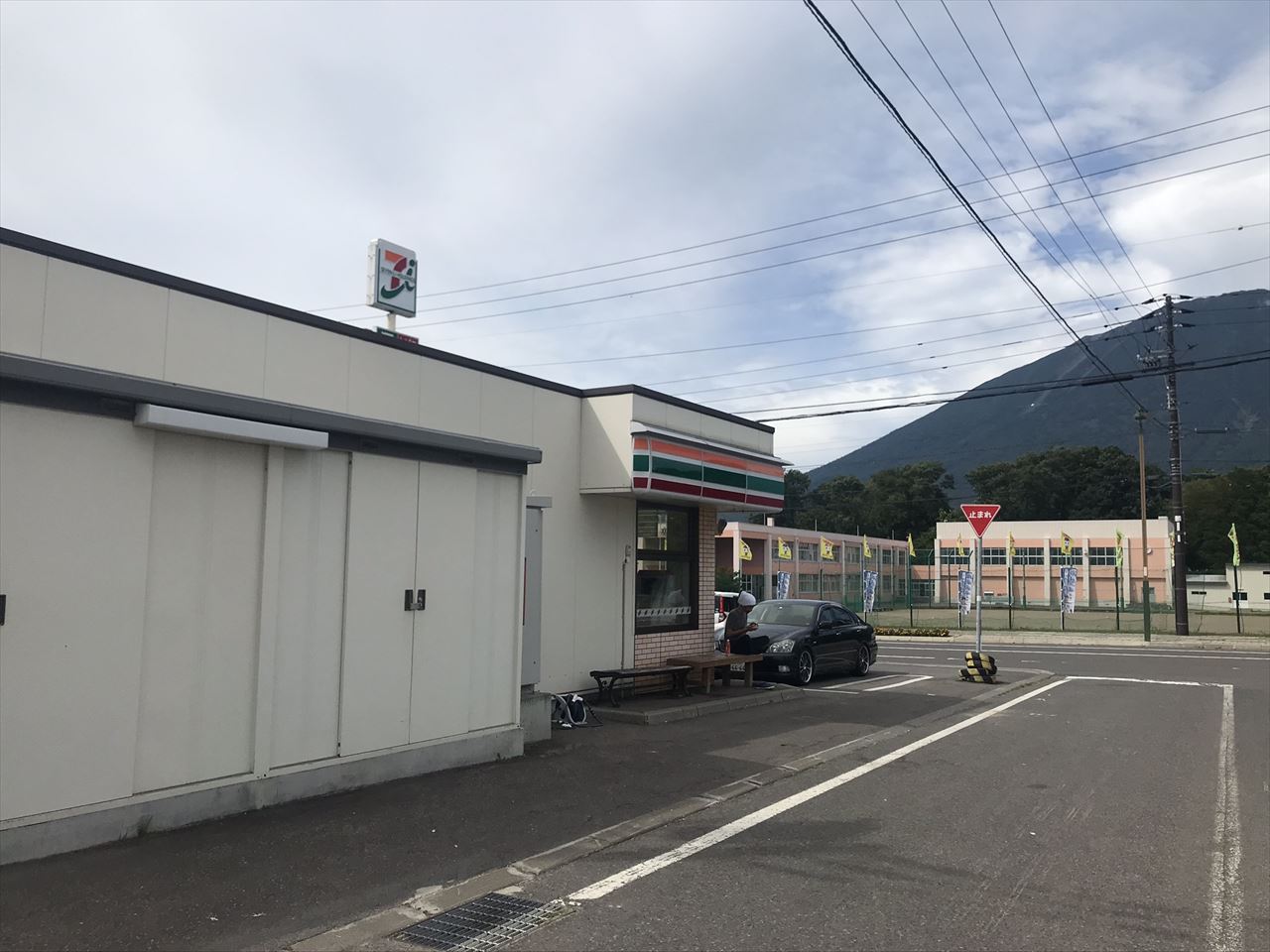 セブンイレブンで食料調達、眼前に後方羊蹄山