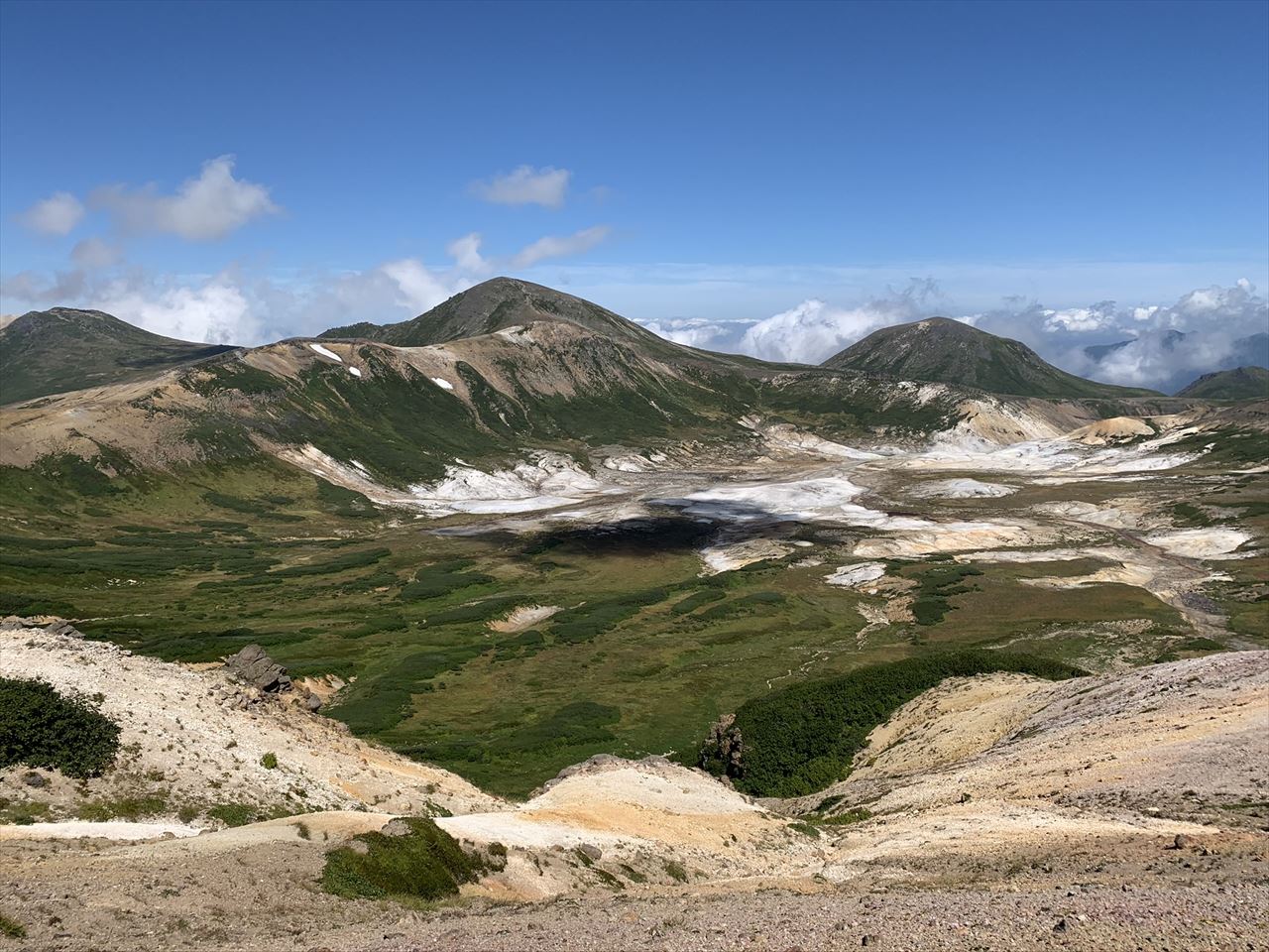 これから登る旭岳は勿論、高根ヶ原やトムラウシも一望。